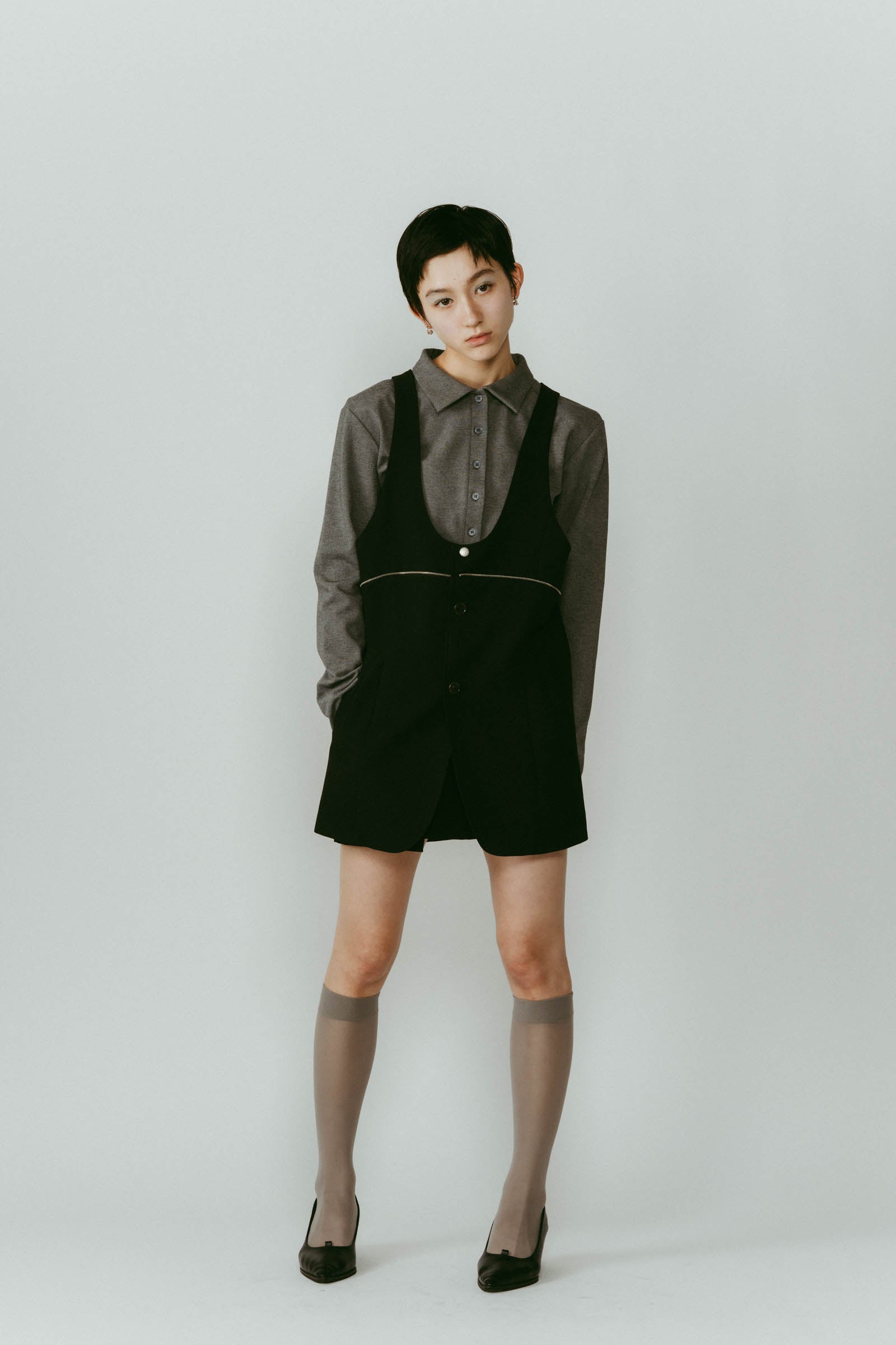 ・ドッキングベストは単体でトップス的に着てもミニワンピースとしても。