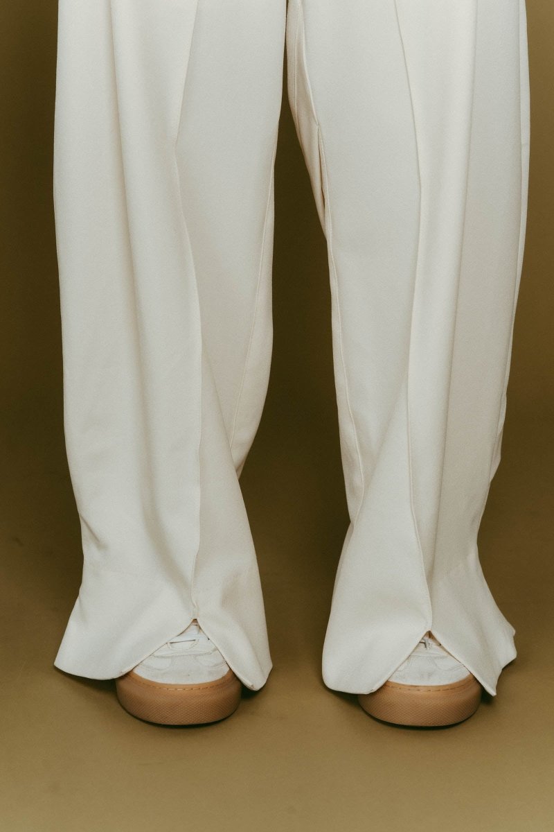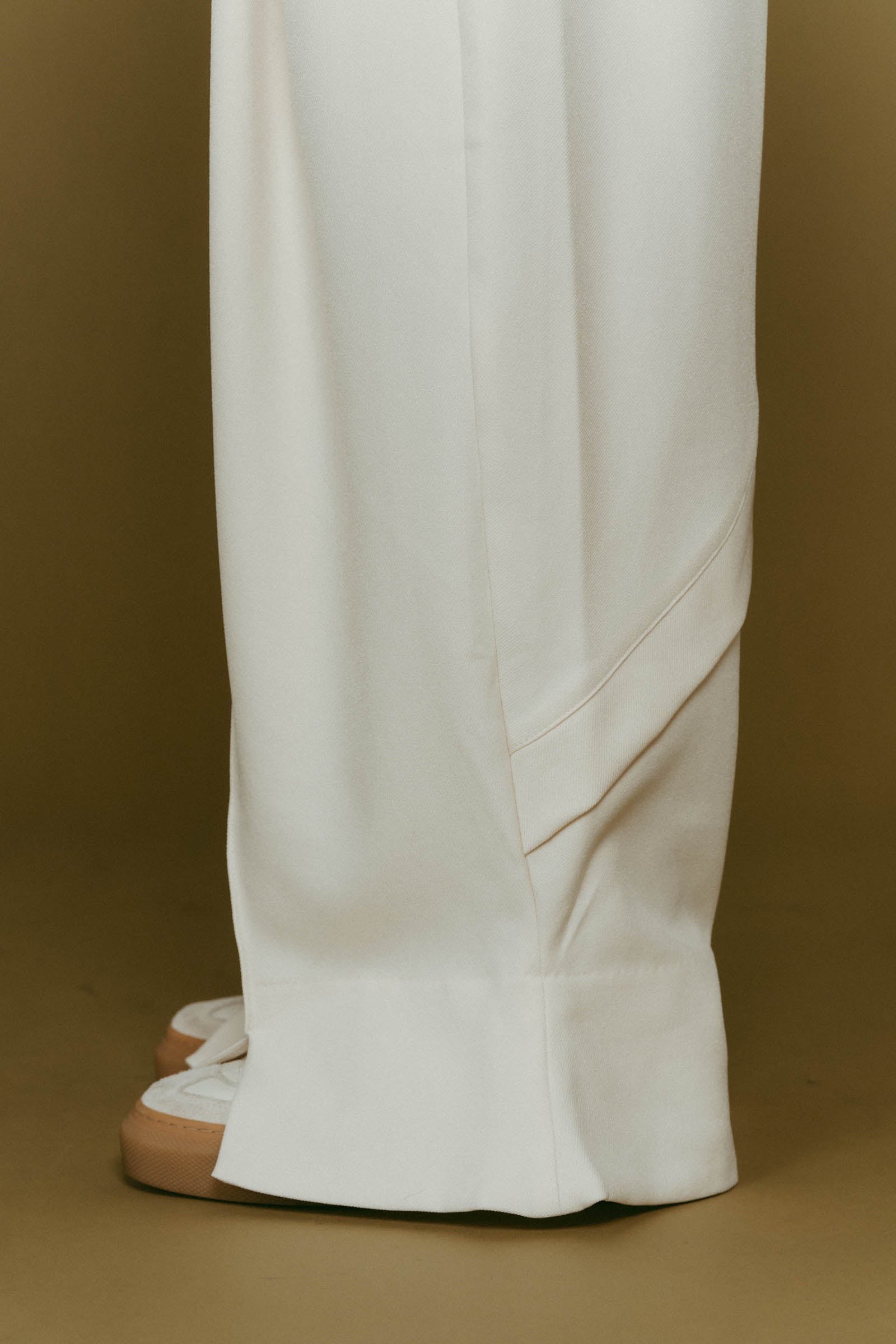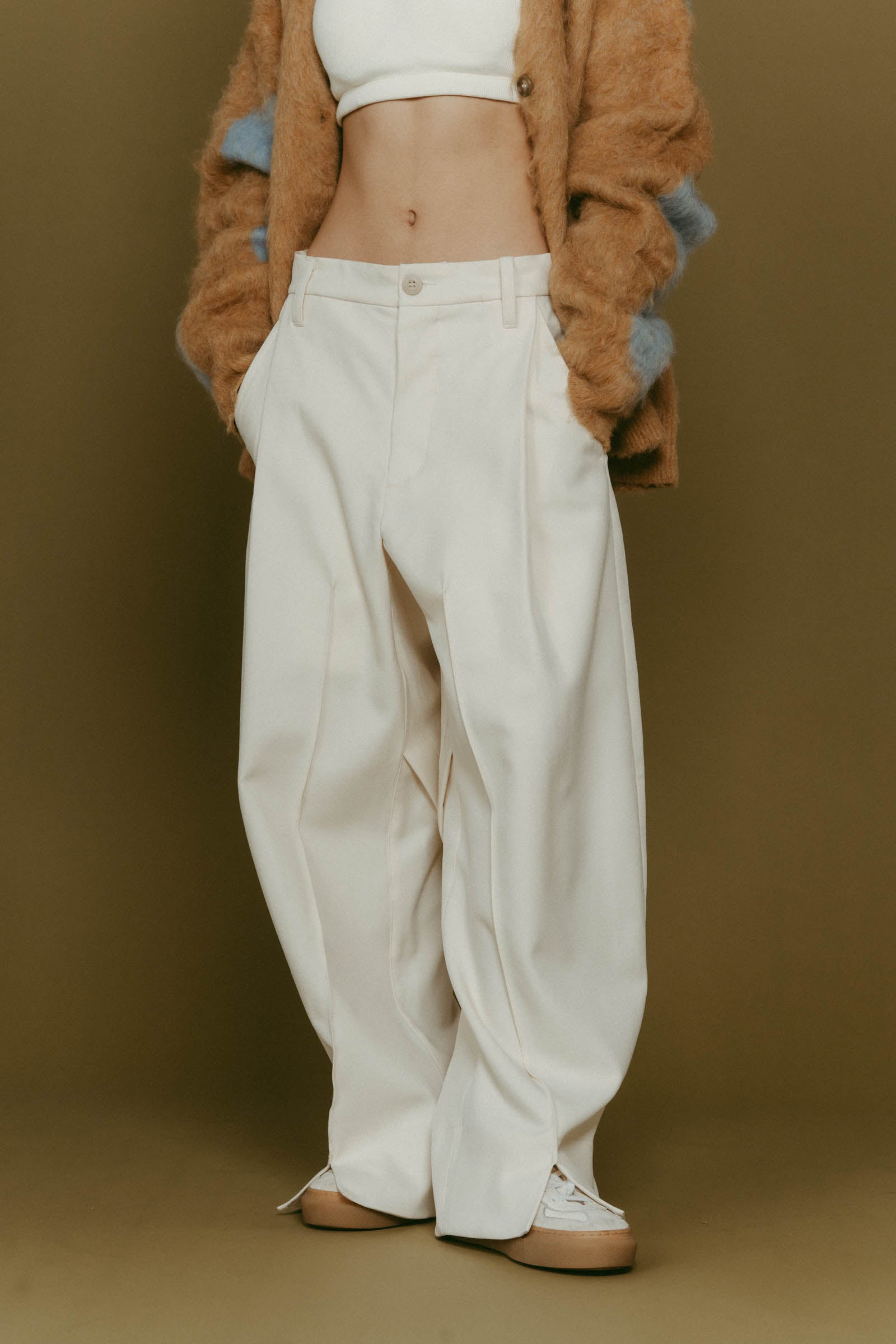 フォーマルにもカジュアルにも転べる万能パンツ。