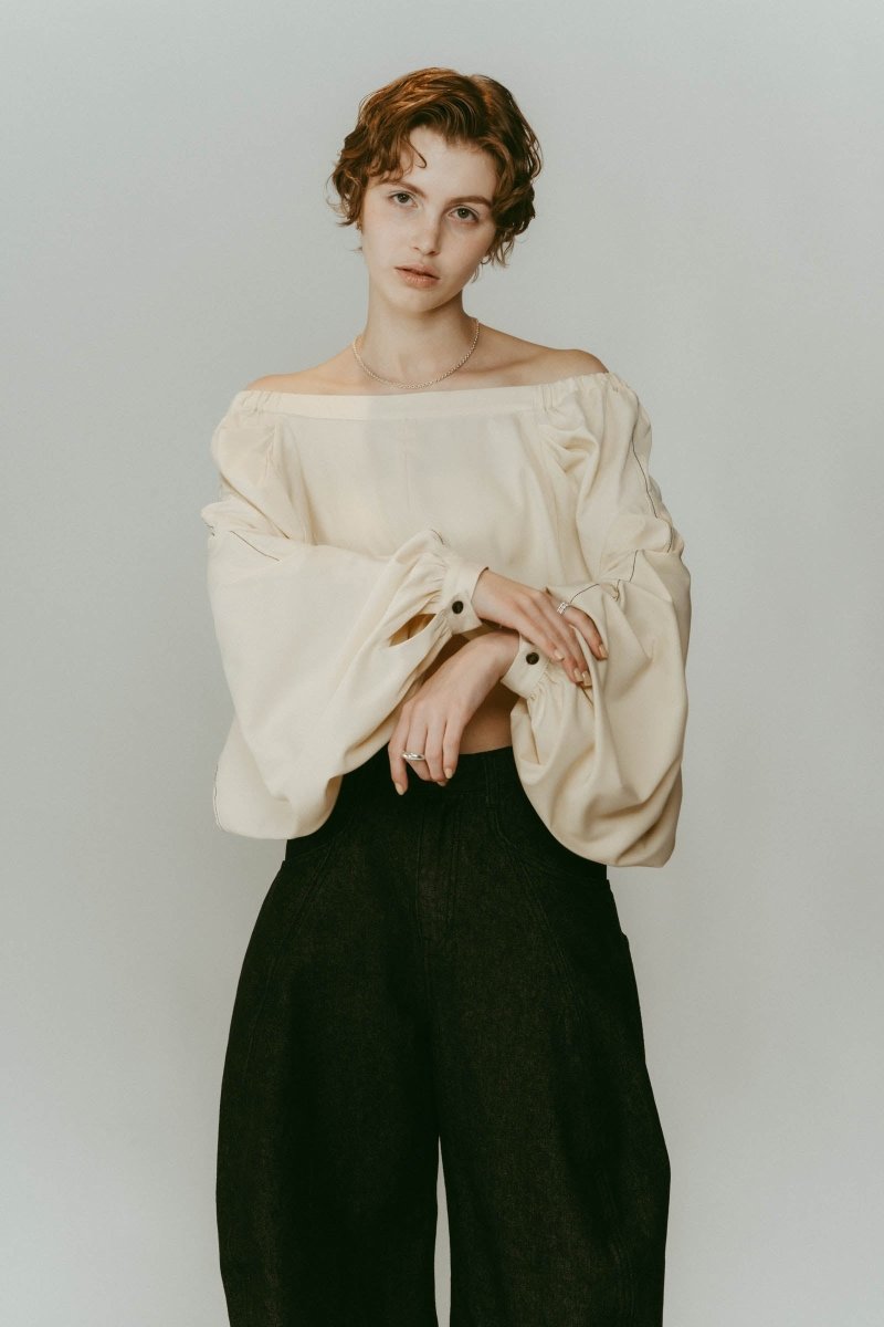 肩のボリュームは抑え、袖にかけてはボリュームが出るシルエットに。