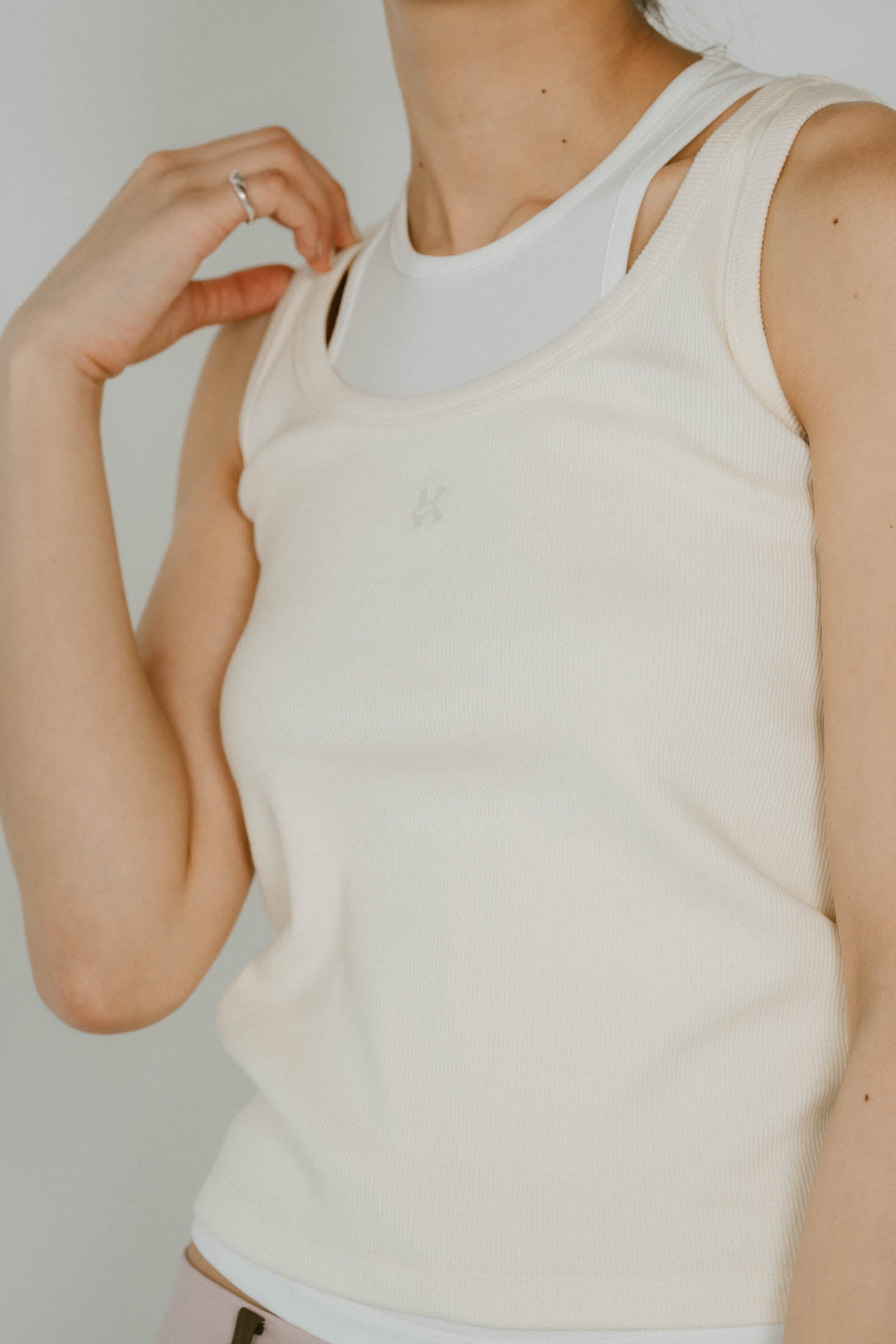 レイヤードタンクトップ。