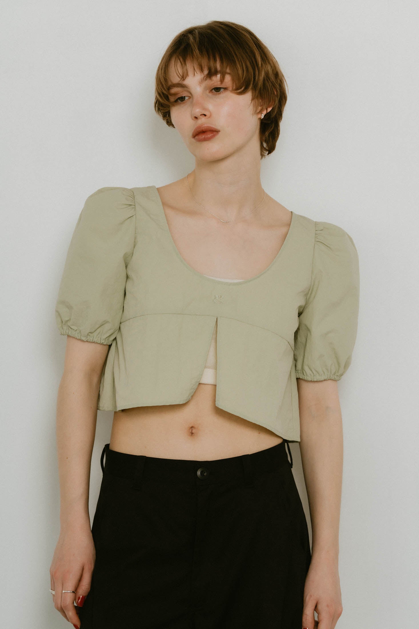- 2way puff sleeve logo blouse/3color