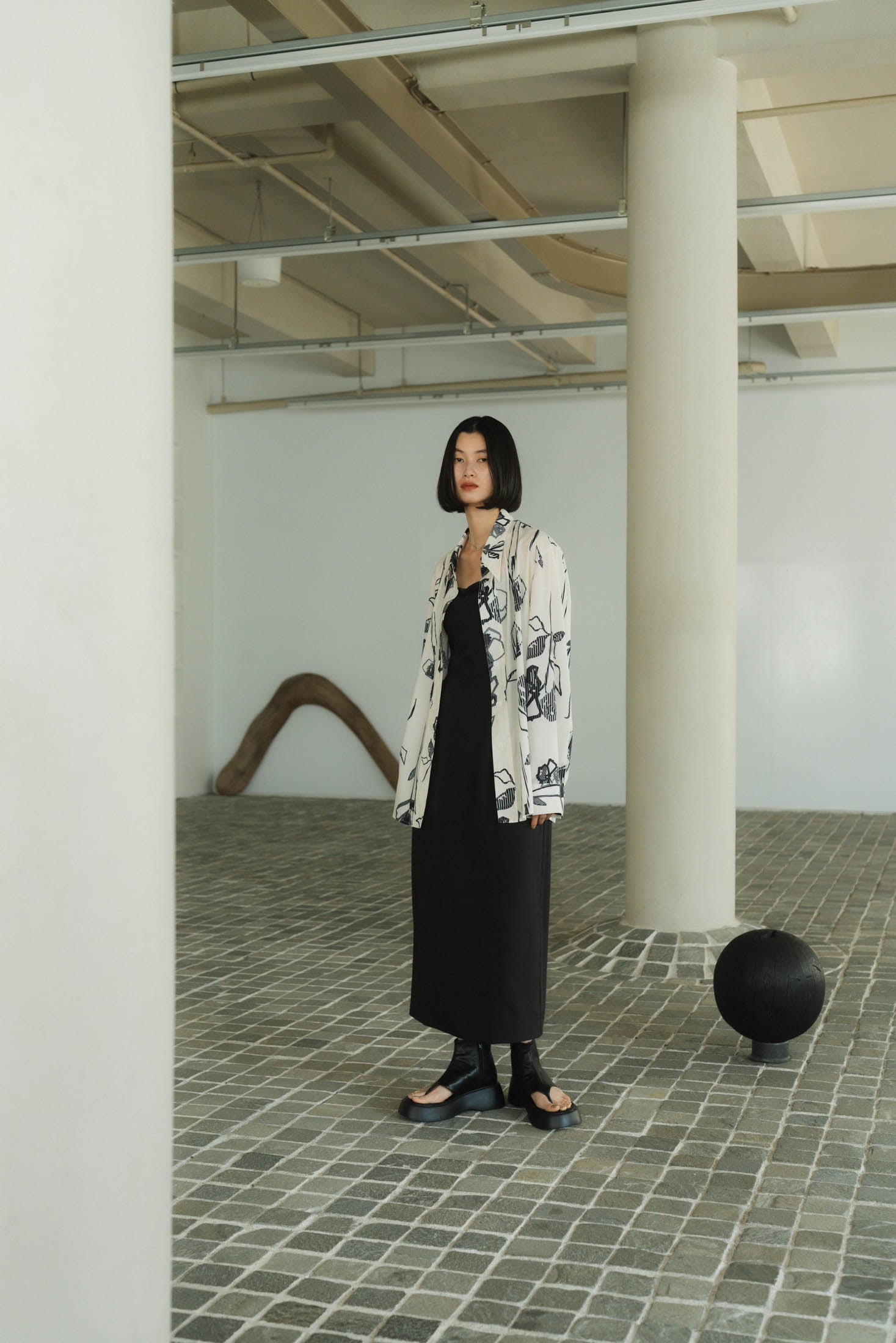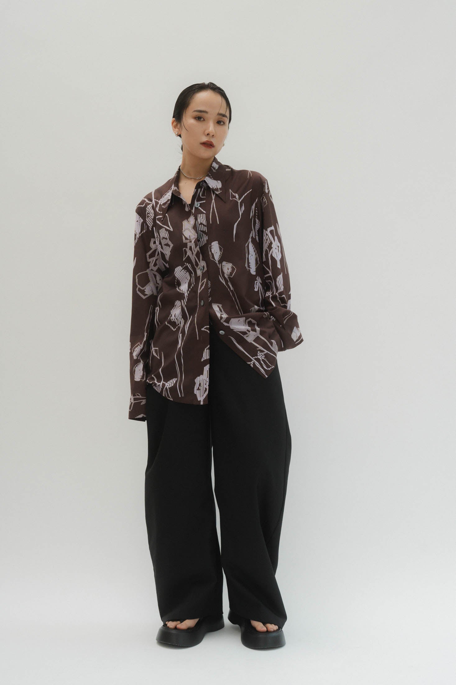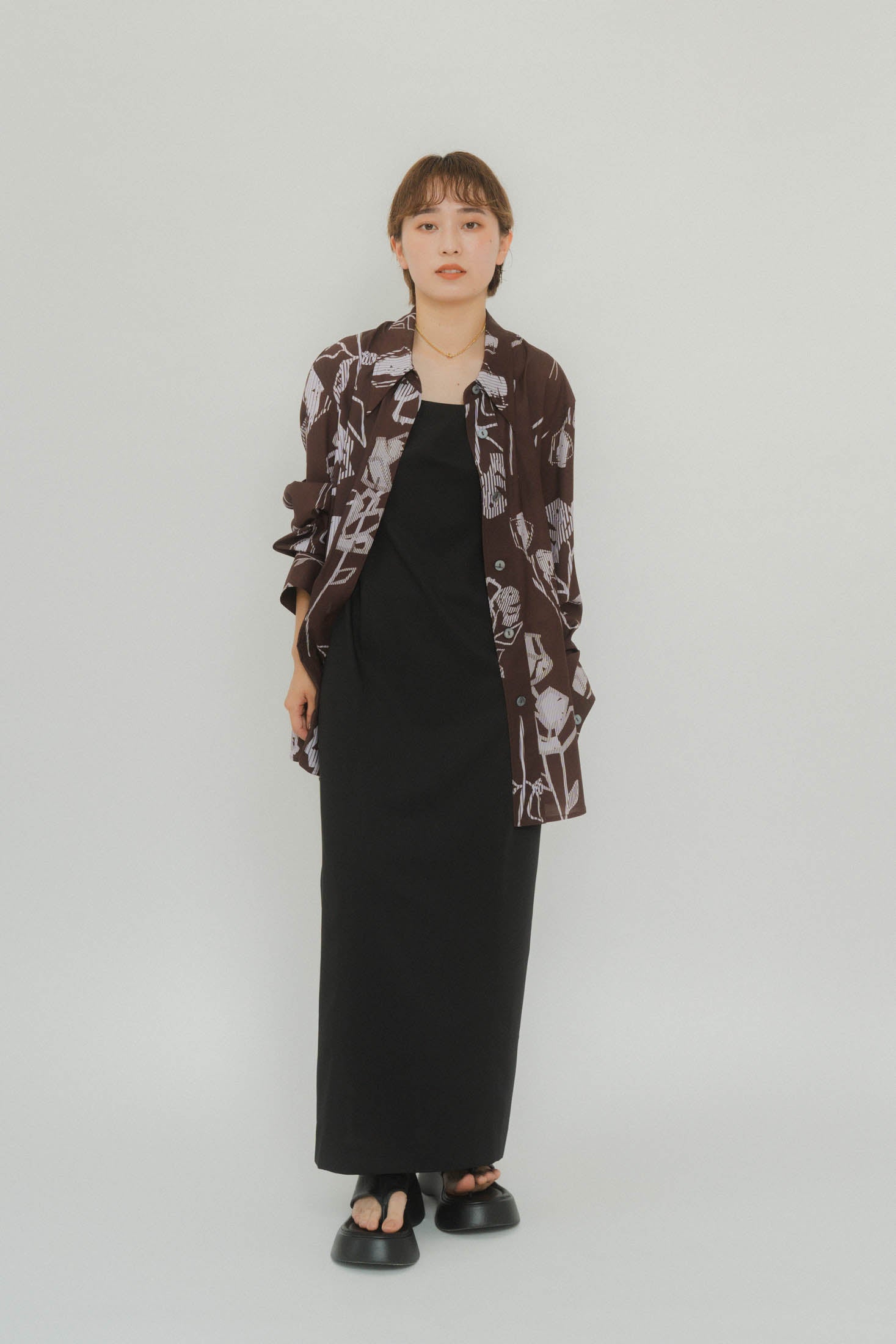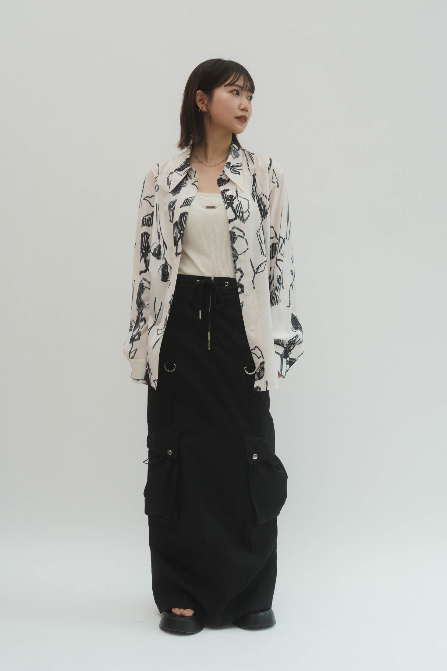 “柄に甘えてシルエットはレディライクに”