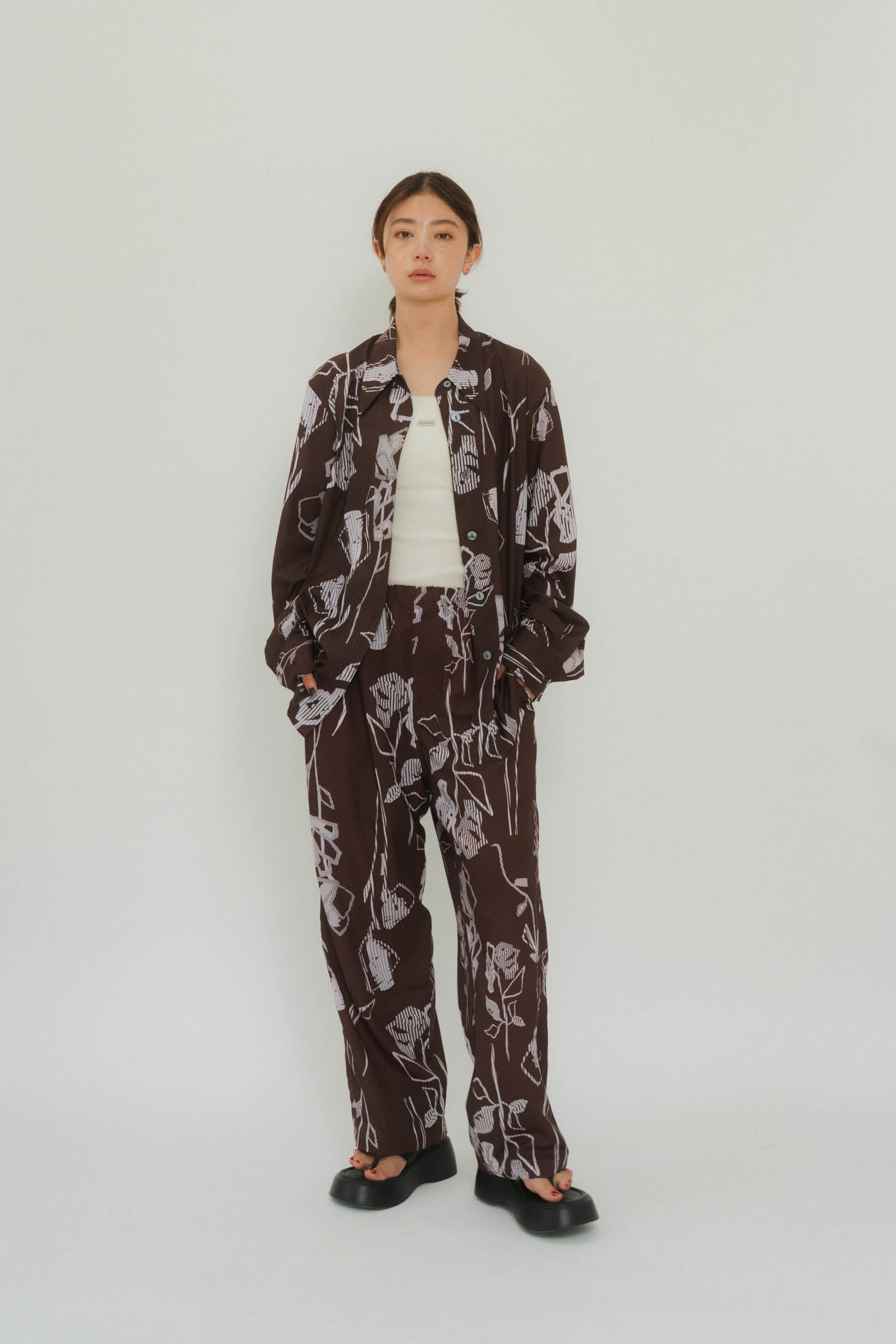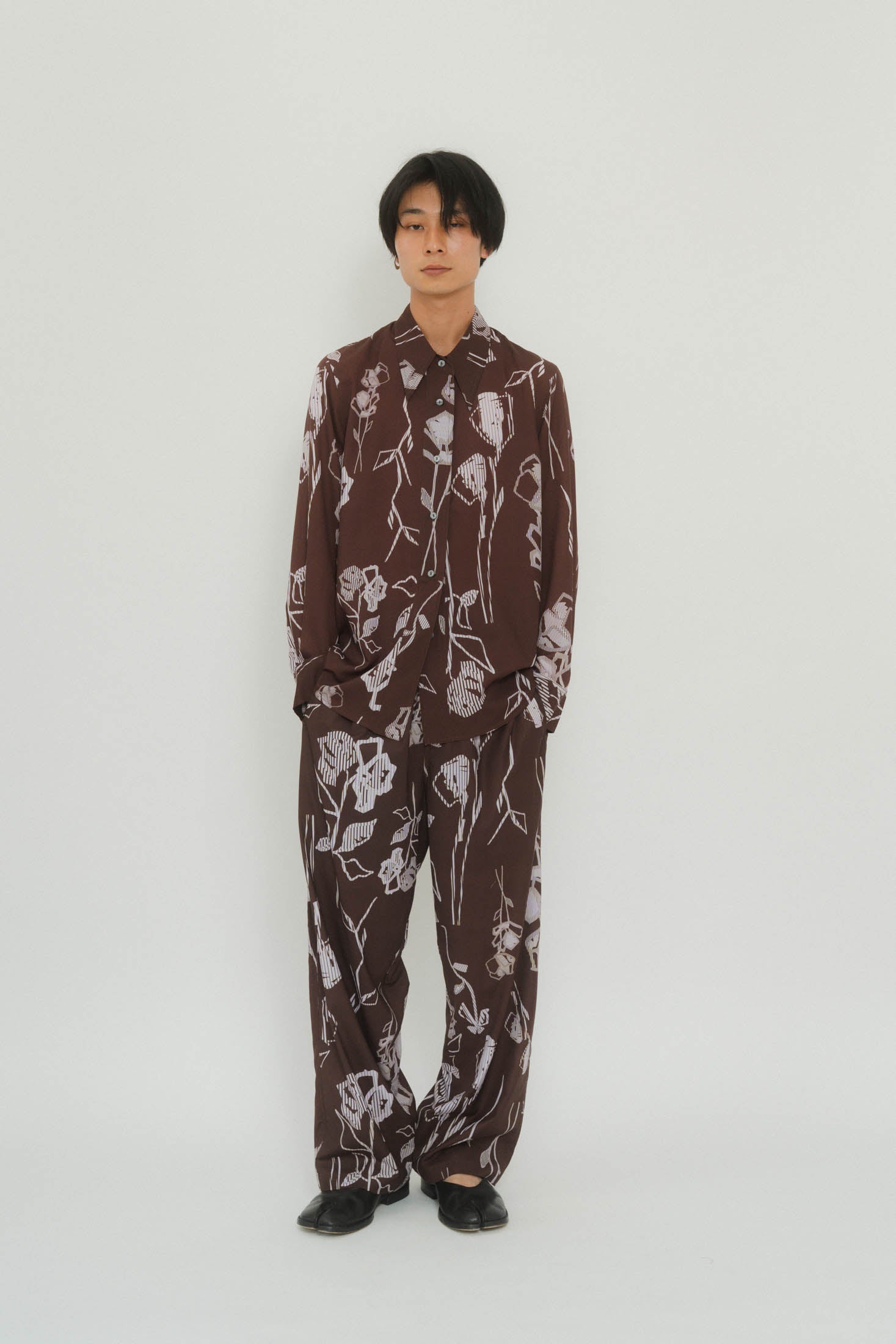 - stripe flower shirt/2color