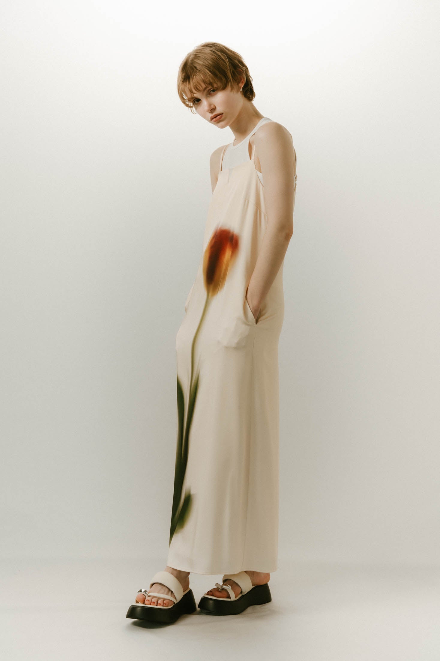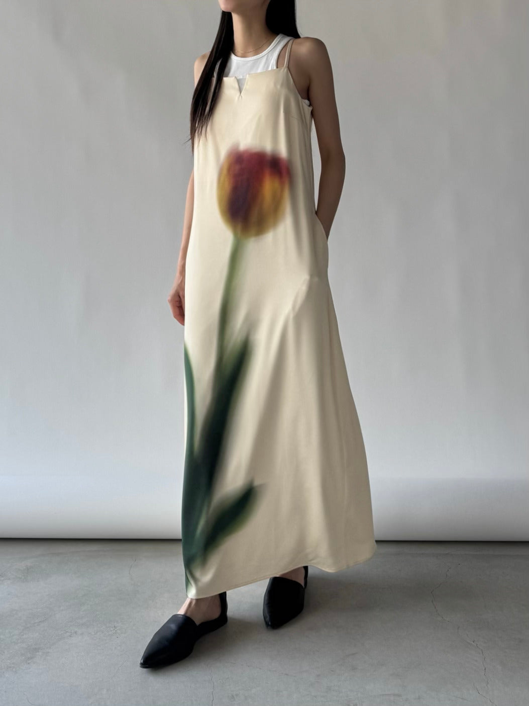 キャッチーな花柄が丁度いいキャミソールワンピース。