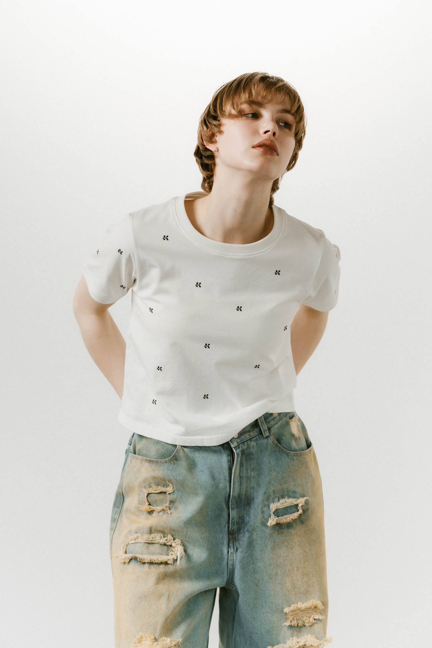 どんな服にも合わせやすいちょうどいいクロップドTシャツ。