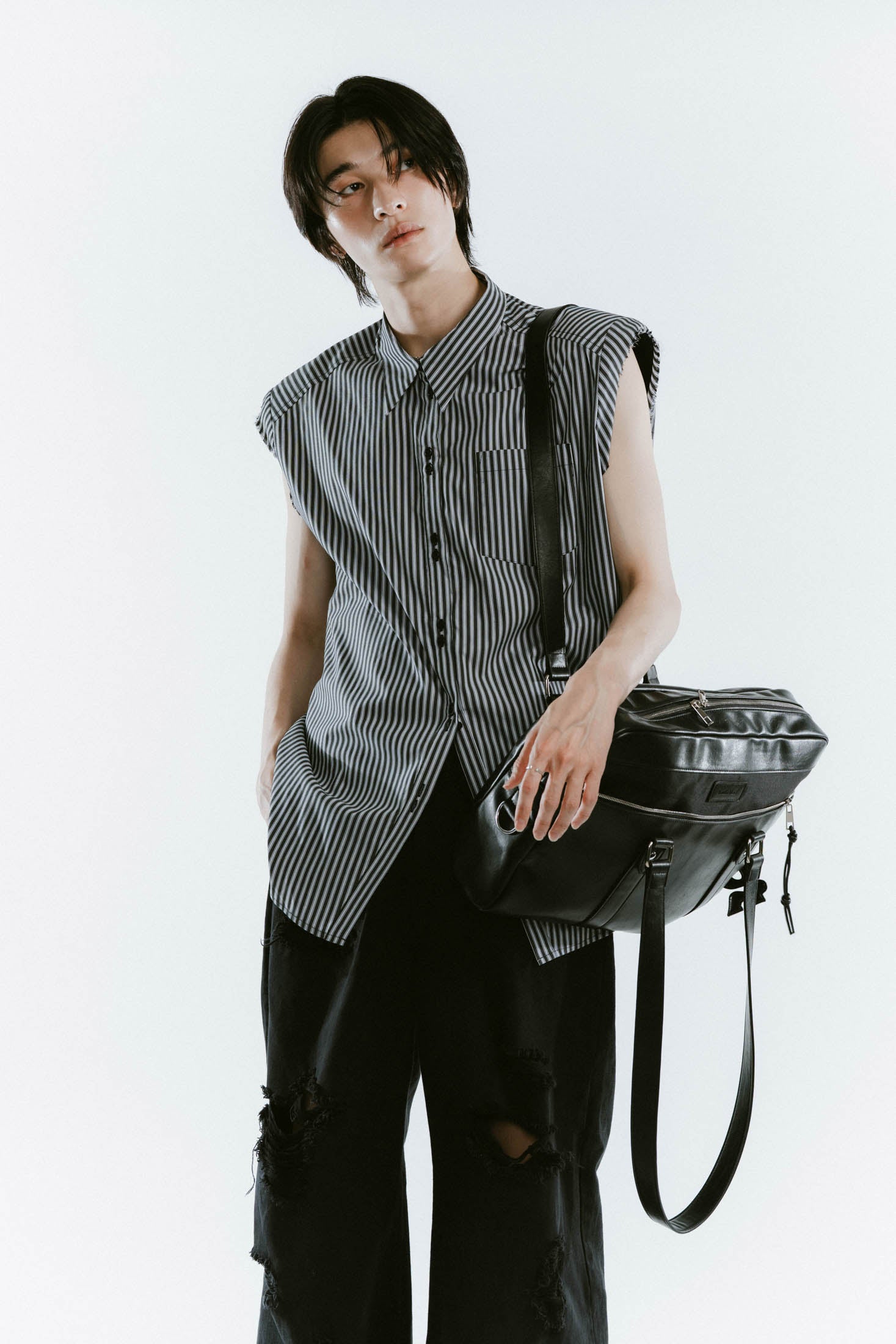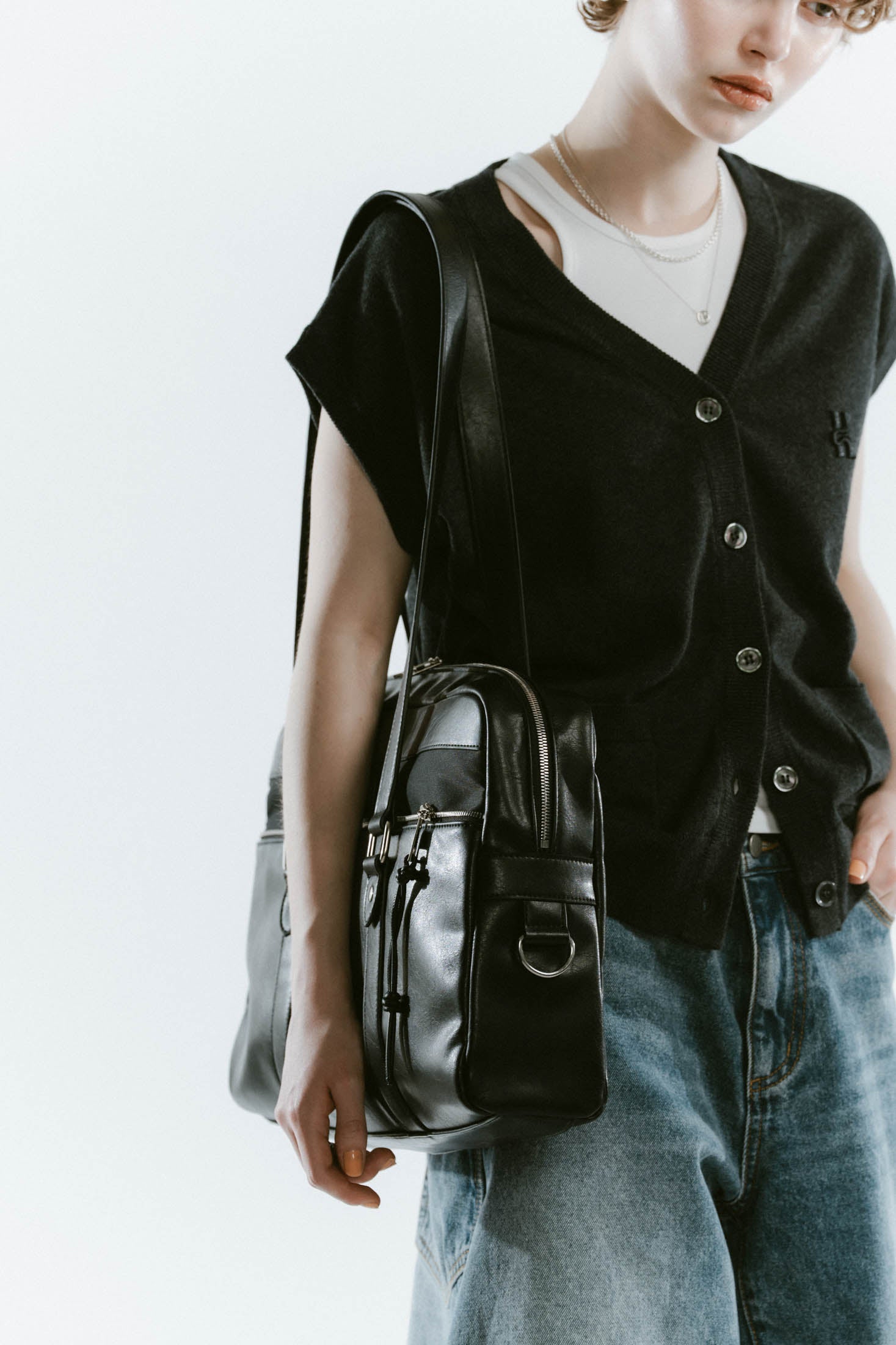 - school style leather bag/2color