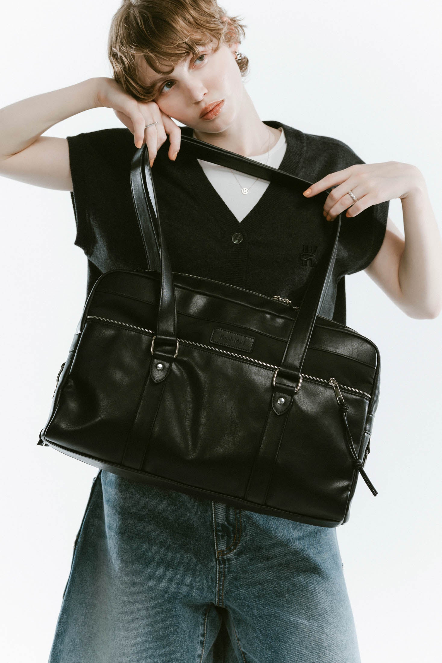 school style leather bag/2color