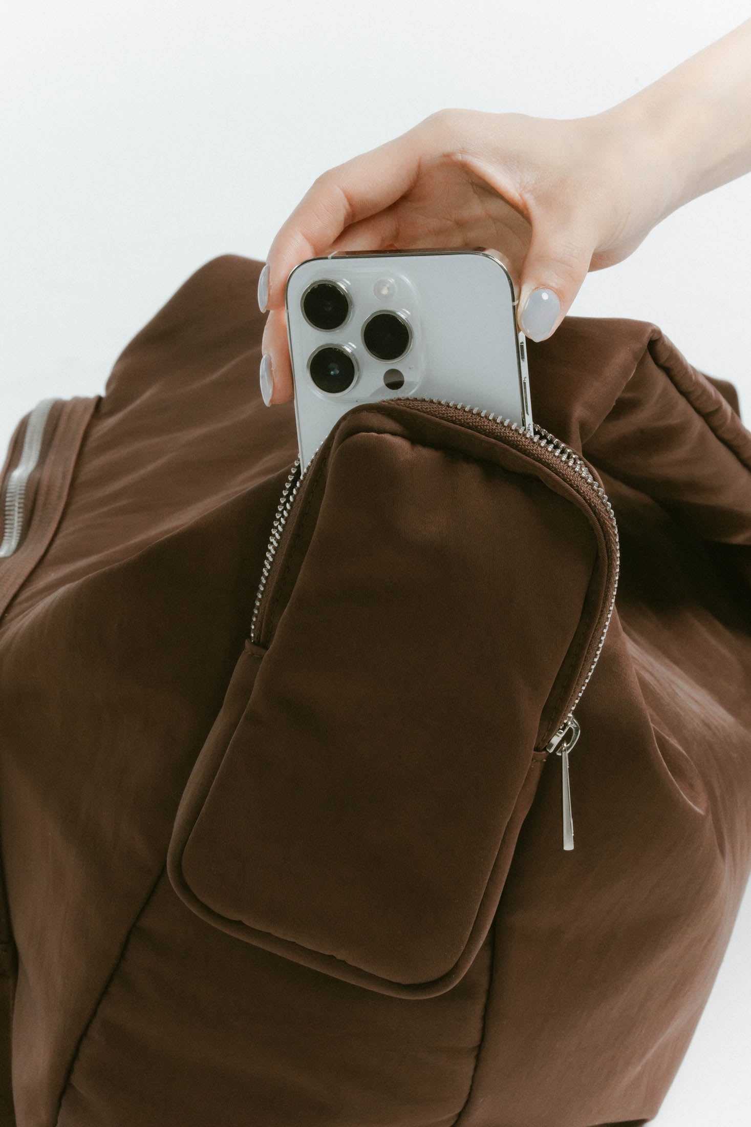 中にはジップポケット、正面のポーチ型ポケットには小物を入れれるように、