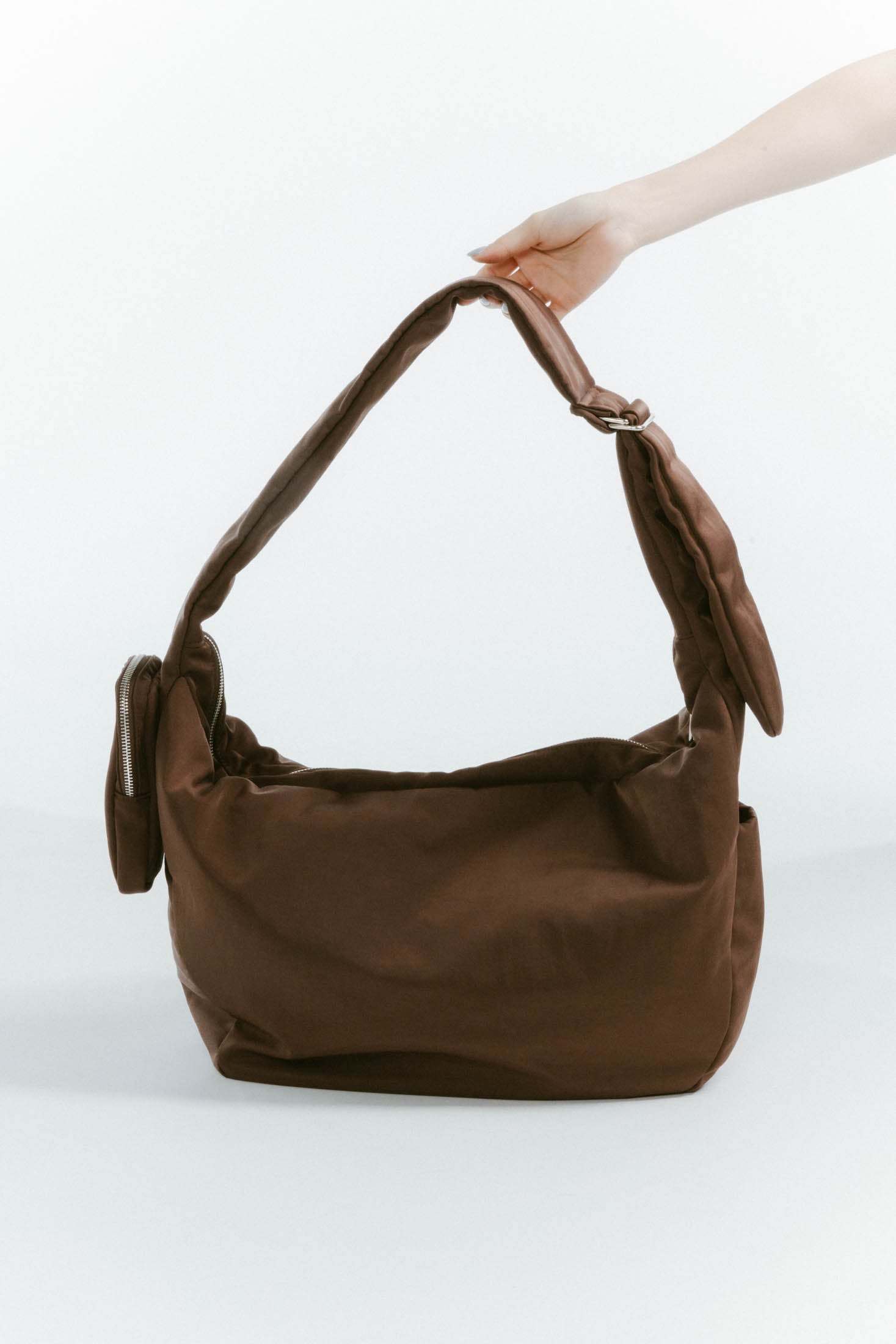 柔らかな丸みを帯びた形状で、肩やクロスボディに掛けたときに馴染みます。
