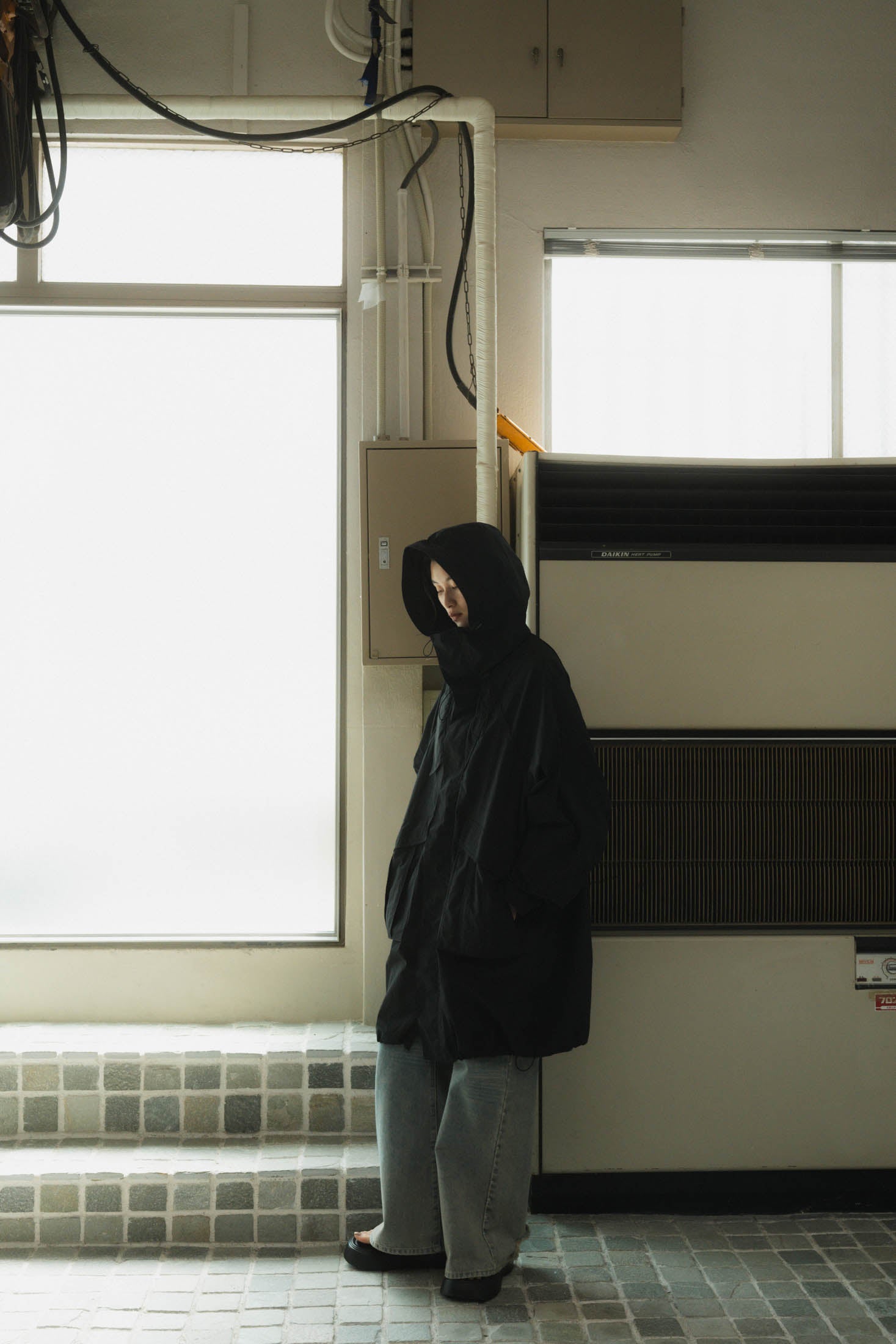 | サイズ(平置き) | 着丈 | バスト幅 | 裄丈 | 袖ぐり | 袖口幅 | 首幅 | 裾幅 | 首丈 | フード幅 | フード高さ |