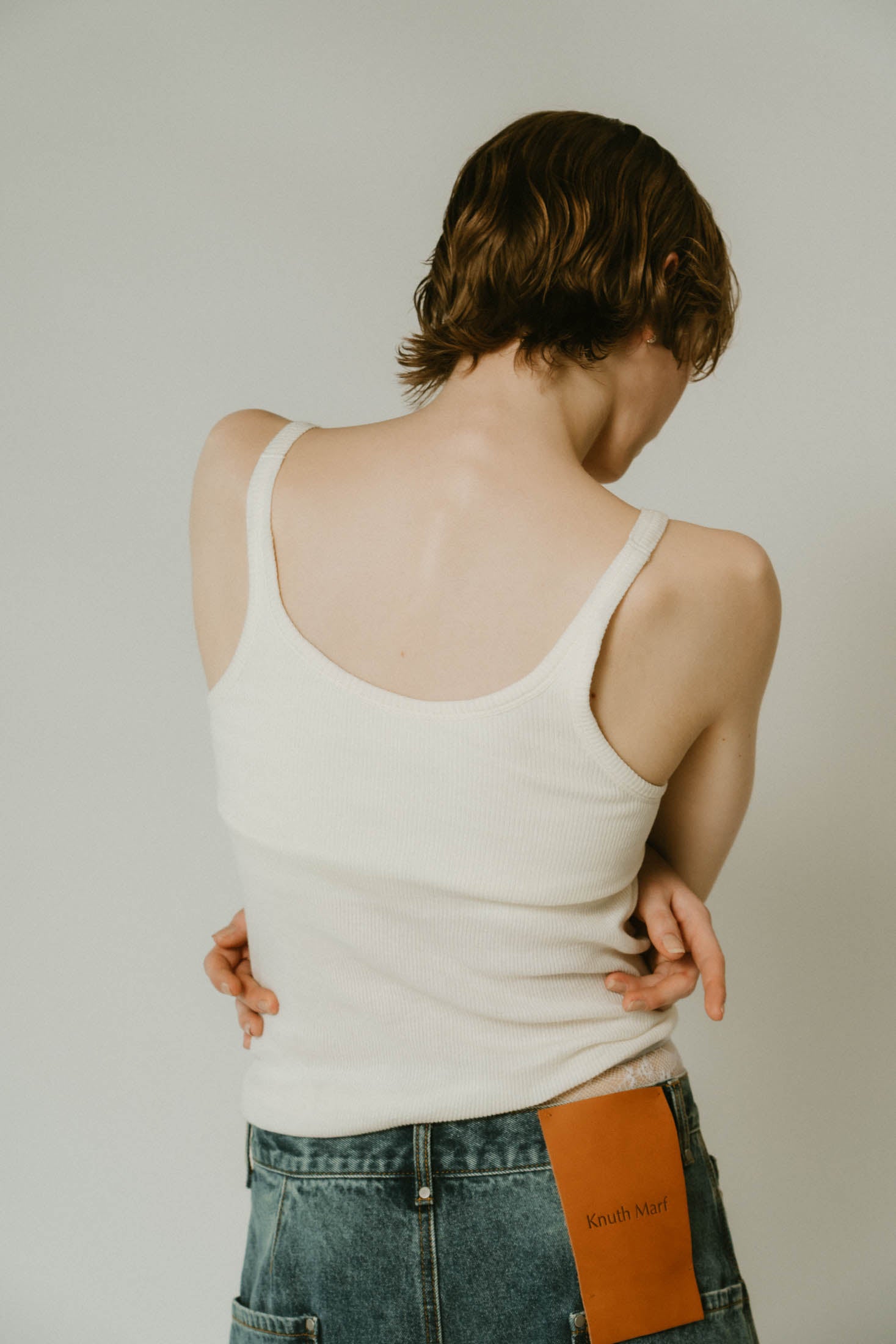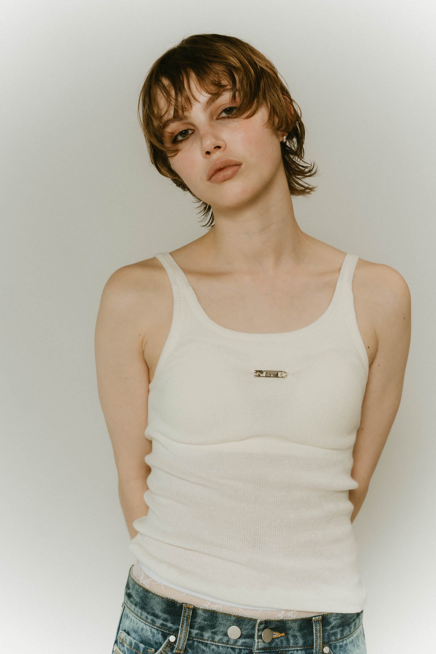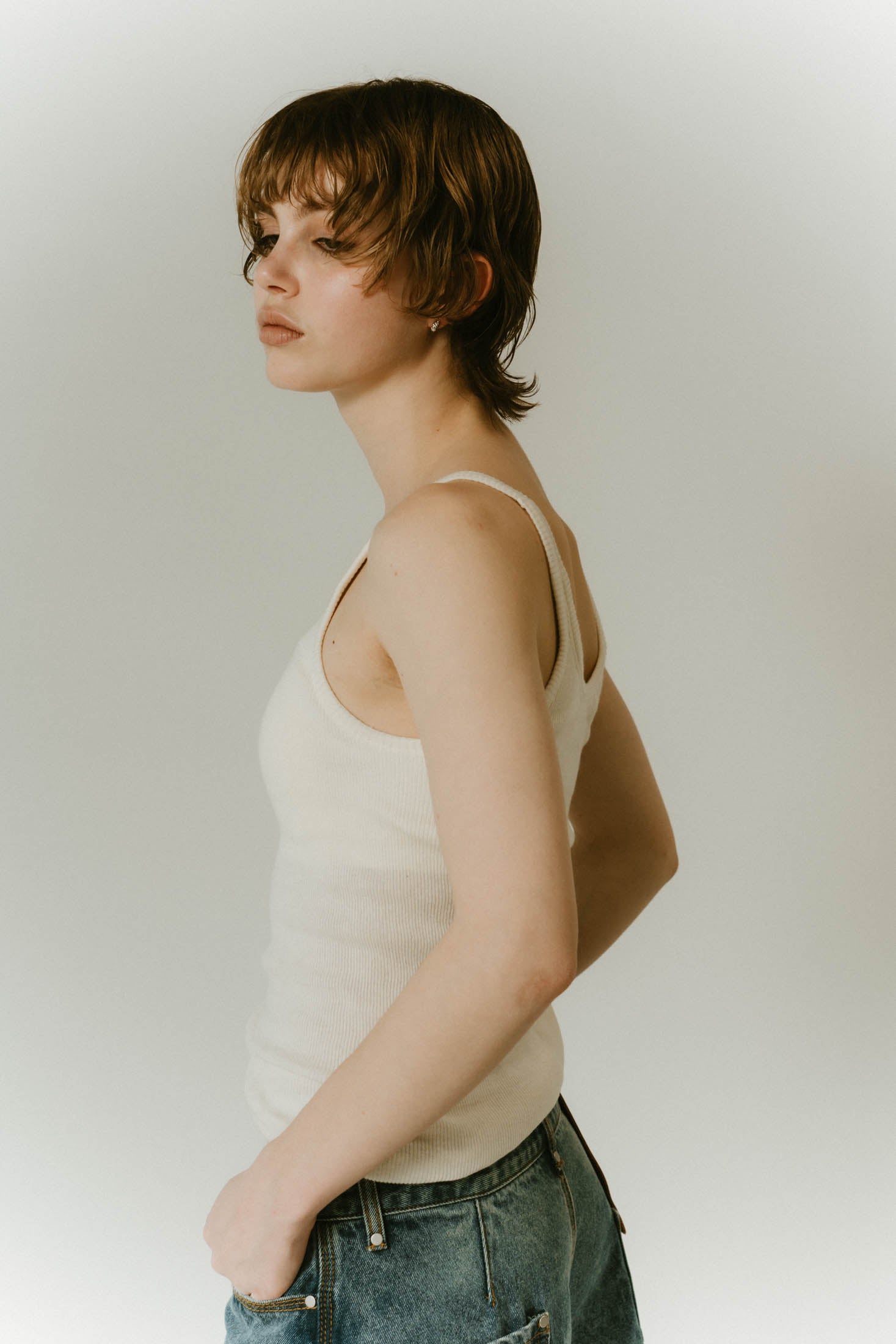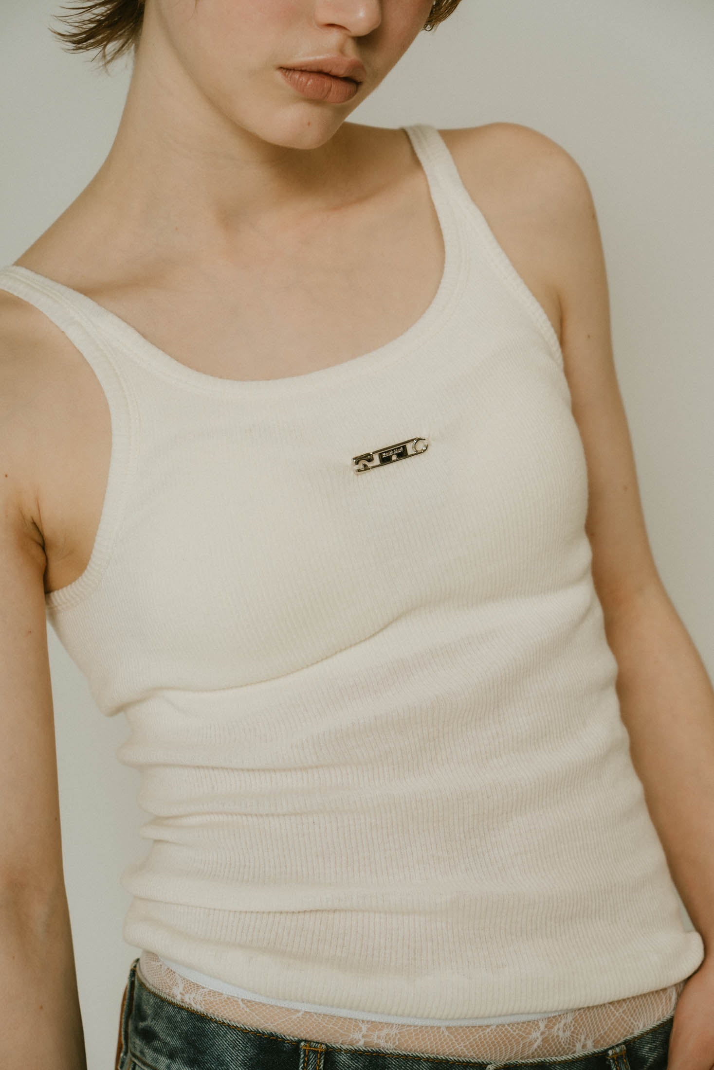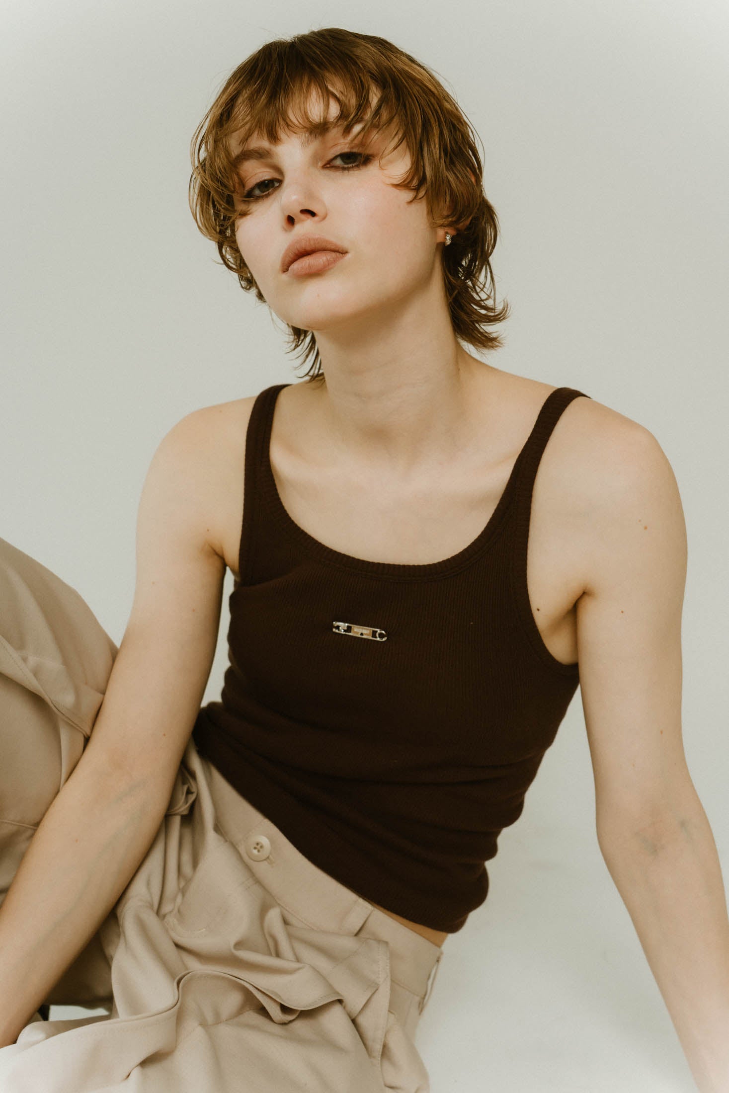 cap in rib tank top/brown,ivory