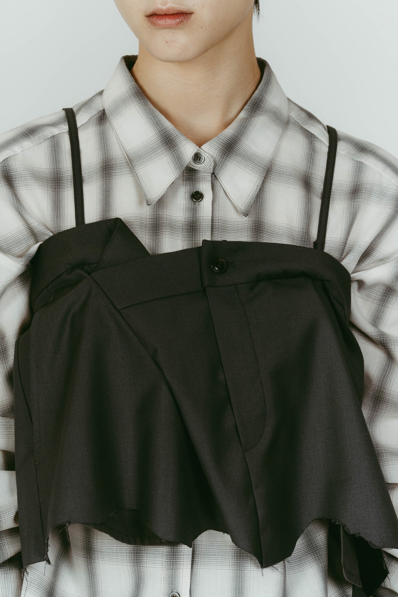 ウエストに重ねられたレイヤーディテールが
