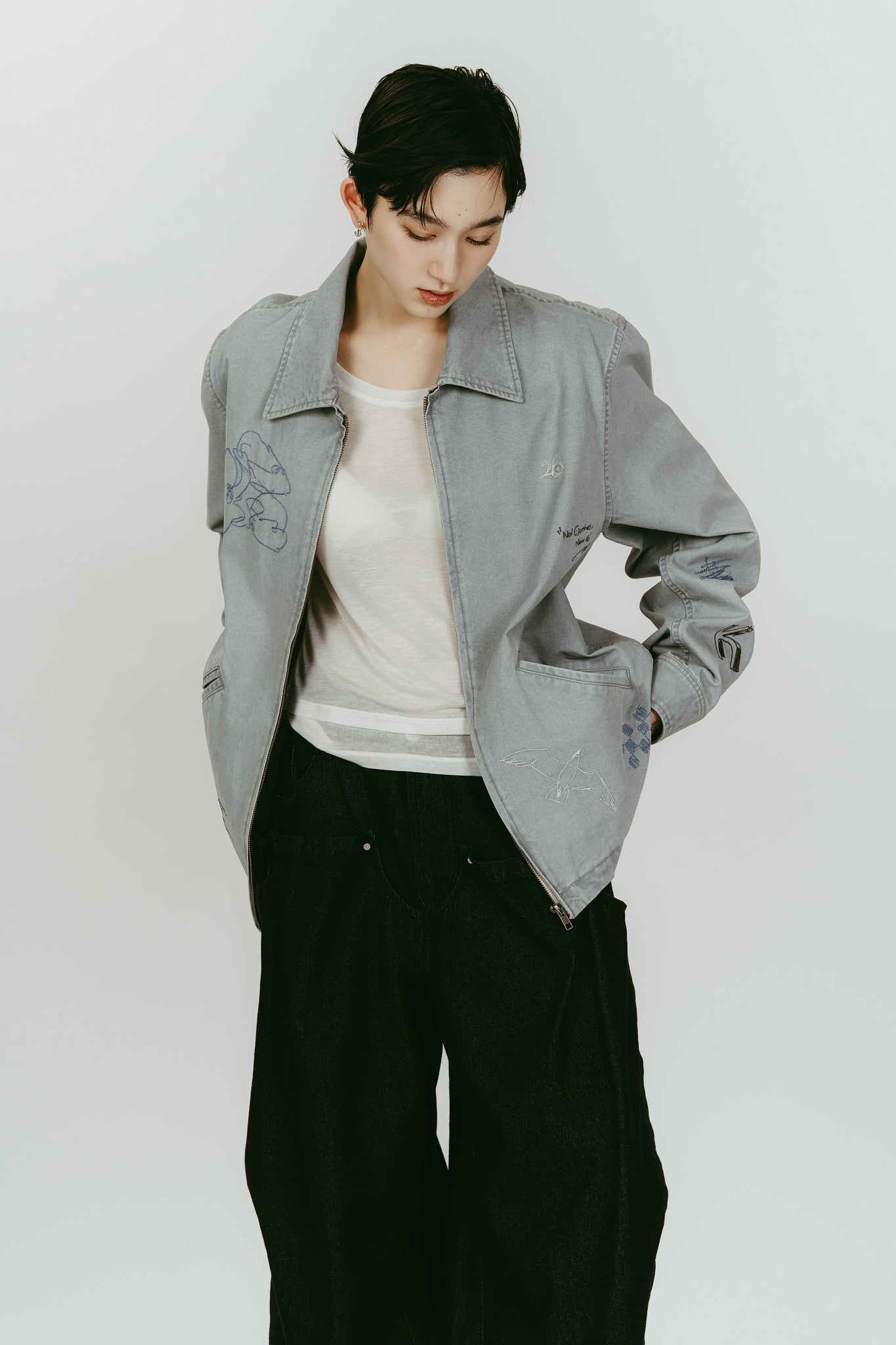 • embroidered jacket(unisex)/blue