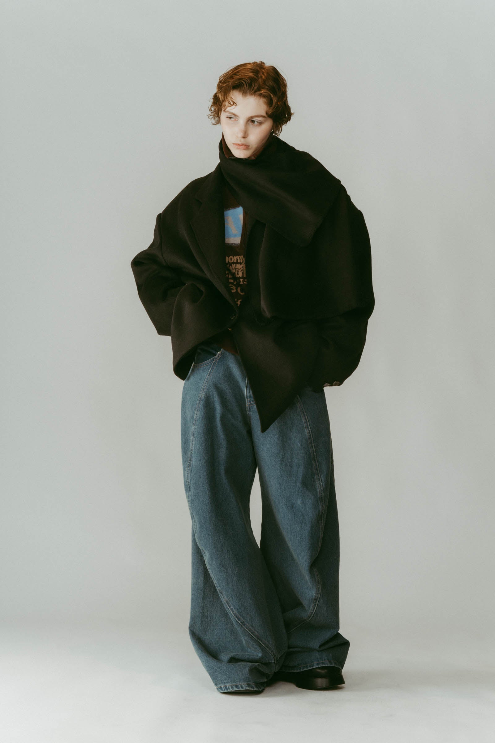 あえて規格外に中に着込めるようデザインしたシルエットは